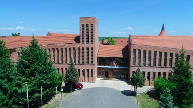 Az intézmény az evangélikus templom mellett, a Régész úton található, Nagy Tamás, Ybl-díjas építész által tervezett épületegyüttesben működik. Az 1997-ben elsőként felépült gimnáziumi épületben jól felszerelt szaktantermek (biológia, fizika, kémia, informatika, ének-zene, rajz, idegen nyelvi szaktantermek, nyelvi és természettudományos laborok) mellett 20 osztályterem, egy 140 férőhelyes ebédlő és egy minden igényt kielégítô könyvtár is helyet kapott. 2002 májusában épült fel a tornacsarnok, majd 2008-ban elkészültek a hozzá kapcsolódó külső sportpályák.