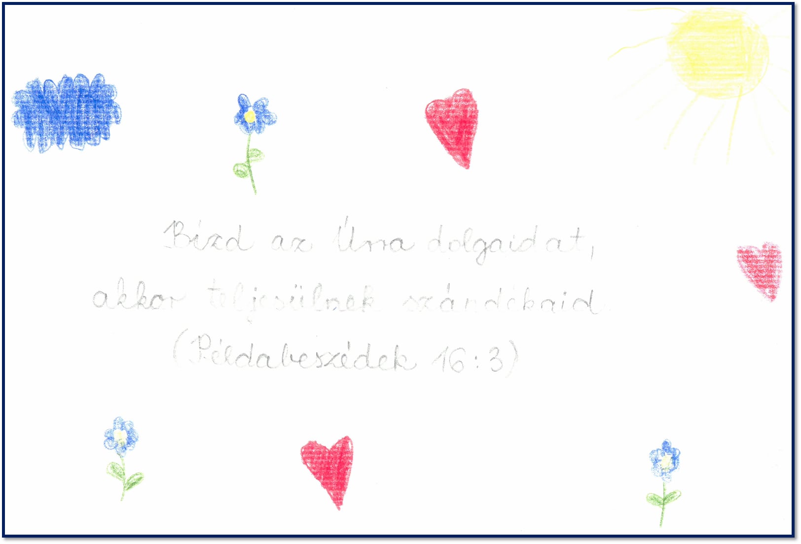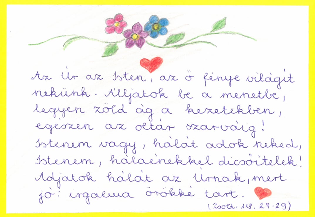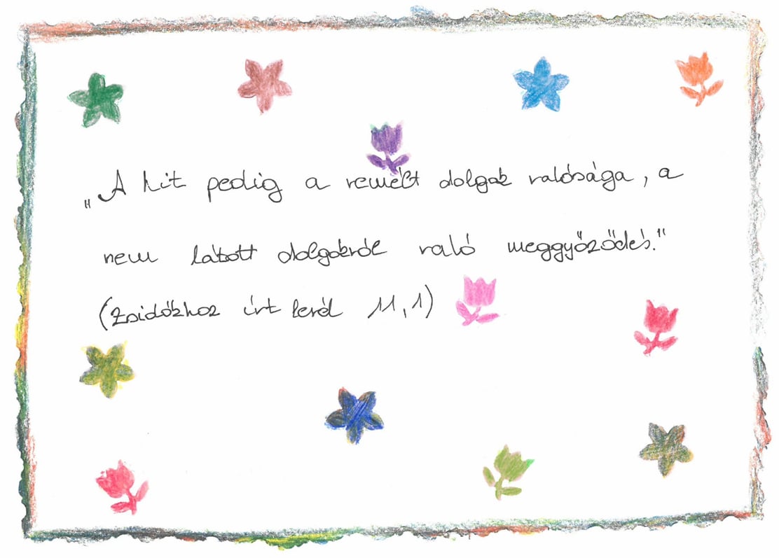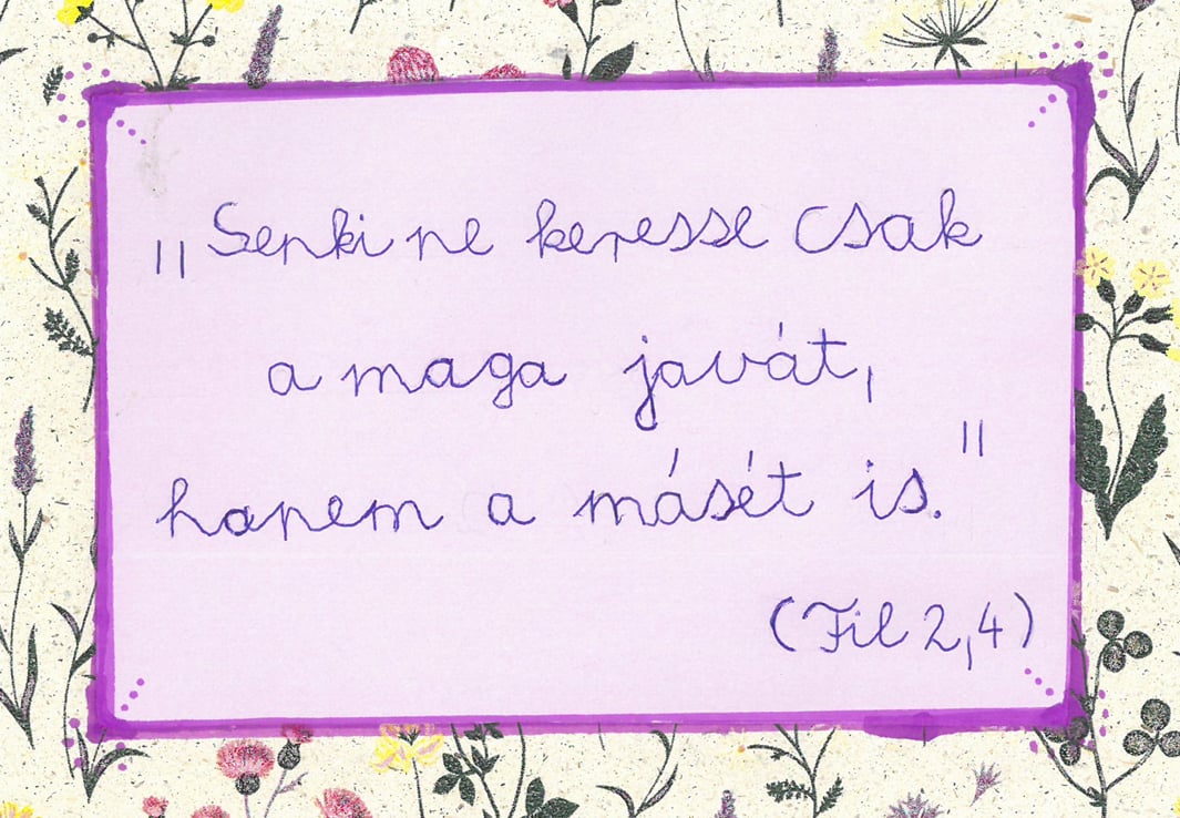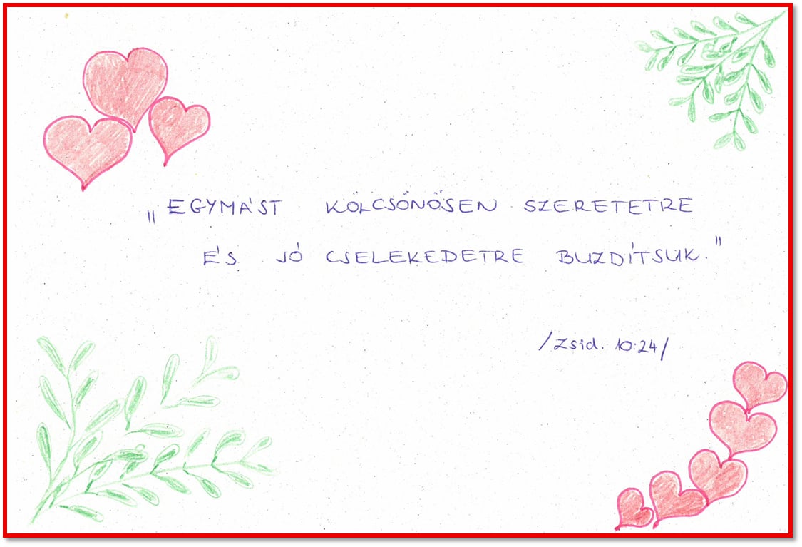 Minden felekezet számára mérvadó a Szentírás üzenete. Az ökumenikus imahéten az alsós évfolyamok családjai választhattak maguknak szentírási idézetet. Ezt kidíszítve hozták be az iskolába, ahol kiálltottuk, hogy másoknak is erőt adhasson a szentírási Ige.